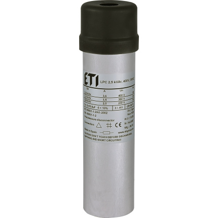 349.80lei TVA inclusCondensator 2,5kVAr, Tip Uscat, 440V, 50Hz, Capacitate 3×13.7Uf, 004656710, ETI