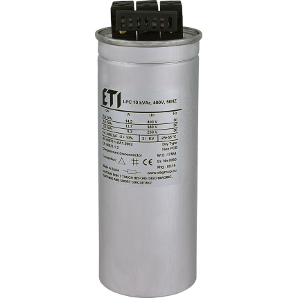 120.45lei TVA inclusCondensator 10kVAr, Tip Uscat, 440V, 50Hz, Capacitate 3×54.8Uf, 004656760, ETI