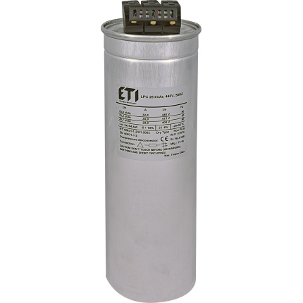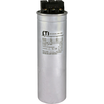 384.00lei TVA inclusCondensator 25kVAr, Tip Uscat, 400V, 50Hz, Capacitate 3×165.8Uf, 004656754, ETI